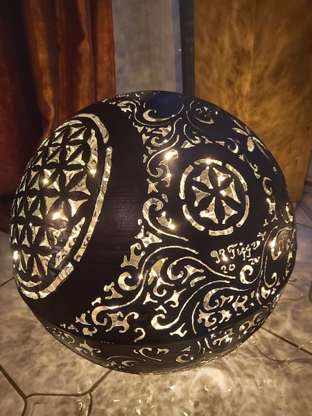 Die Kugel mit dem Motiv: "Blume des Lebens" fertige ich in verschiedenen Durchmessern: