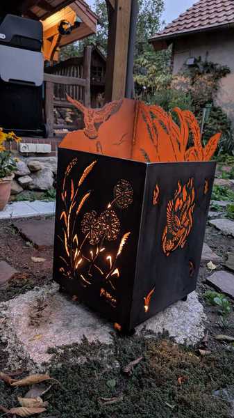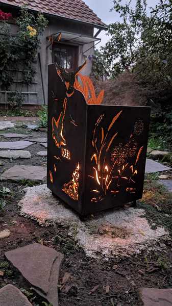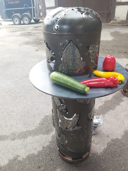 Neu im Sortiment: Feuertonne, Grill mit Stahlplatte und gleichzeitig eine Gartenlampe.